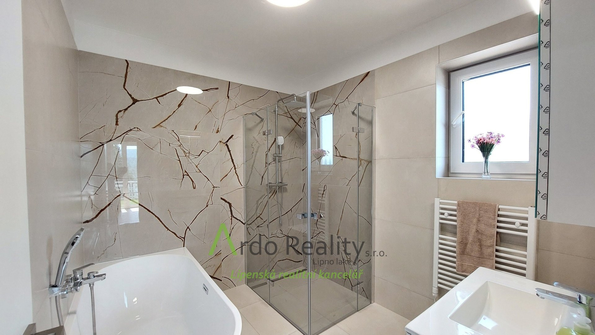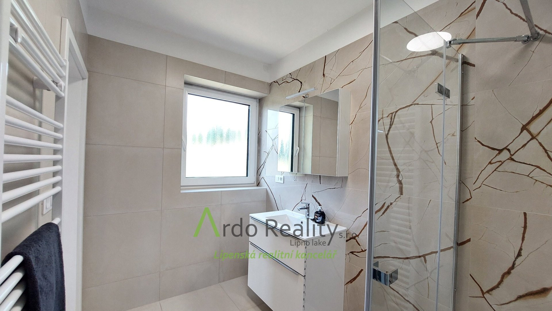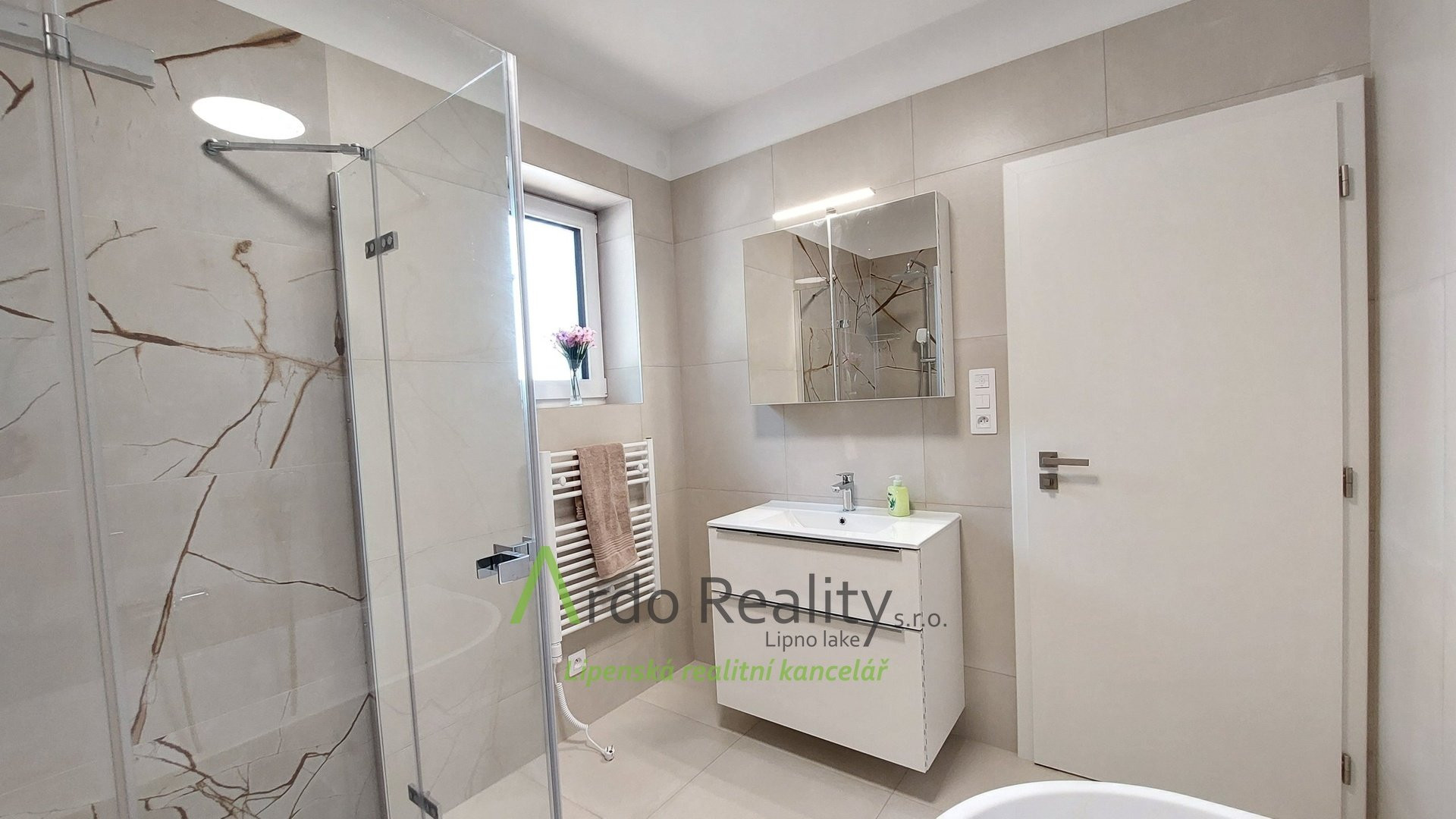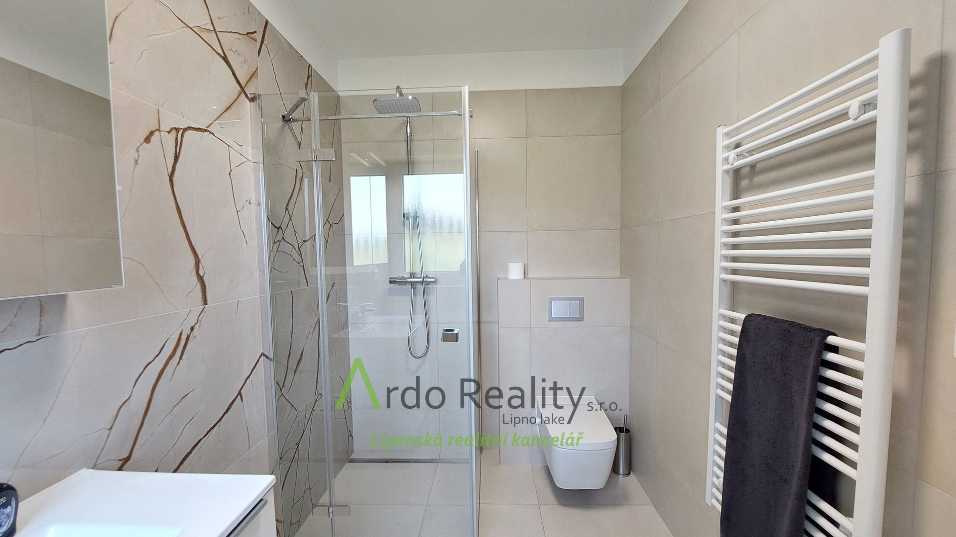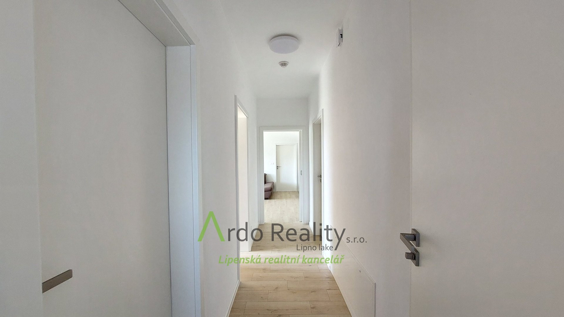 ДОЛГОСРОЧНАЯ АРЕНДА на фиксированный срок 5 лет или по договоренности, с целью предоставить арендаторам возможность с радостью принять и использовать весь дом и участок как полноправные владельцы. Строительство шести одинаковых домов, отвечающих самым высоким стандартам, недалеко от курортного города Фримбурк, практически на берегу озера Липно, только что завершено. Представляем вашему вниманию безбарьерный бунгало, расположенный таким образом, что просторная терраса ориентирована на юг, с видом на озеро. Владельцы уже оборудовали этот дом, мы представляем его вам в качестве образца, и он будет сдаваться в аренду последним. Дома построены с использованием новейших технологий, очень энергоэффективны, отапливаются немецким тепловым насосом Viessman типа «воздух-вода», во всем доме тёплые полы. В гостиной также есть дымоход для установки печи-камина или камина. Здание построено из кирпича Porotherm толщиной 30 см, стены утеплены полистиролом толщиной 15 см, потолок утеплён толщиной 18 см, окна с тройным остеклением и рольставнями с электроприводом. Крыша шатровая, керамическое покрытие произведено немецким производителем Roben. На чердак можно подняться по складной лестнице. Планировка дома следующая: спальня родителей с собственной ванной комнатой с душем и туалетом с биде, а также просторная гостиная со встроенной кухней Schüller, столешница с мойкой Blanco, шкафами и техникой Electrolux занимает всю длину комнаты. Подведены вода и электричество к американскому холодильнику с льдогенератором. В этой комнате можно установить каминную печь, что обеспечит приятную атмосферу в холодные дни. Во второй части дома есть ещё две комнаты, из которых также можно выйти на солнечную террасу. В конце коридора находится отдельный туалет с небольшой раковиной, а последнее, но не менее важное помещение – просторная ванная комната с отдельно стоящей ванной, душем и раковиной. Перед входной дверью находится защитный тамбур, где расположен наружный блок системы отопления, а также выполнена электроподготовка для установки зарядной станции для автомобиля, откуда возможен только вход в дом. Здесь же находится кладовая, место для большого шкафа для хранения вещей, а также вход в техническое помещение. Здесь же можно спрятать ещё один удобный шкаф для хранения необходимых вещей, в основном внутреннего блока теплового насоса, гидроаккумулятора с управлением подачей воды и современной системы водоподготовки Watex, обеспечивающей высочайшее качество питьевой воды. Осталось ещё достаточно места для стиральной машины и сушилки. Главное преимущество этого дома – большая открытая терраса площадью около 40 м² с прекрасным видом, которая на две трети покрыта раздвижной крышей. Эта терраса соединена со всеми жилыми комнатами дома. Дождевая вода собирается в подземном резервуаре объёмом 4000 литров и может использоваться для полива. На участке рядом с домом предусмотрена парковка на две машины. Каждый дом оснащён собственной системой безопасности Jablotron, подключенной к пульту охраны с выездом. Интернет предоставляется компанией Starnet. Как мы уже упоминали, на фотографиях показана модель меблированного дома. Остальные пять полностью готовых домов сдаются в аренду. По договоренности их можно обставить в том же или похожем стиле, либо по вашему желанию. Вся огороженная те